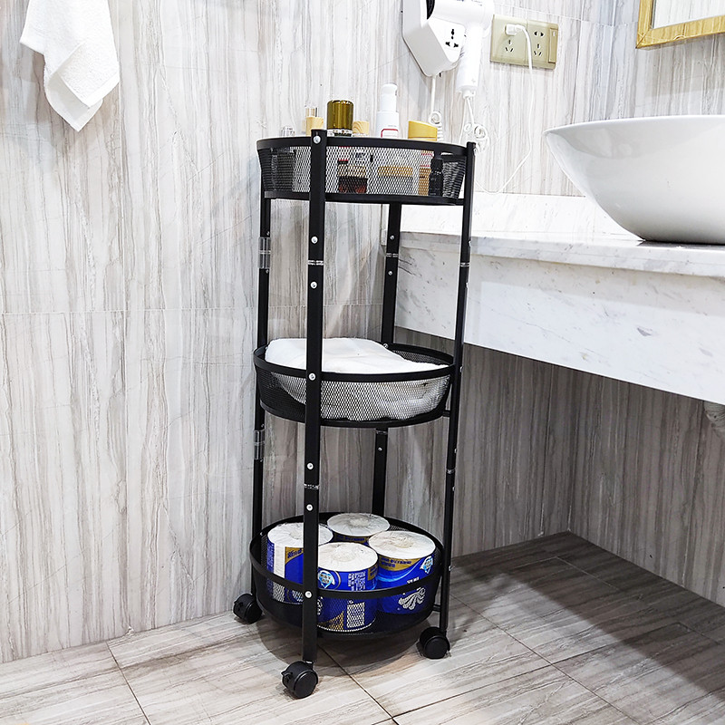 This rolling cart have 3 large round baskets,provide large capacity to store your home supplies.Its size is 35*35*90CM.