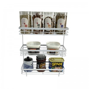 The metal wire 3 tier spice rack is made from strong steel with a powder coated finish.It is ideal for your storing and making them easy to see and take. The flat wire top enhance the whole structure. The spice rack will organize well of your kitchen,cabinet,pantry,bathroom.