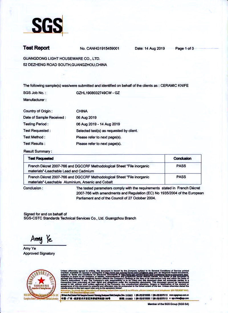 products.Our knives passed DGCCRF,LFGB & FDA food contact safety