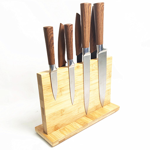 Both sides of this knife block are magnetized. This means that the 11.73 inch wide,7.87 inch tall and 3.86 inch deep (at base) knife block can hold knives of all types with blades up to 8 inches long. Knives are not included.