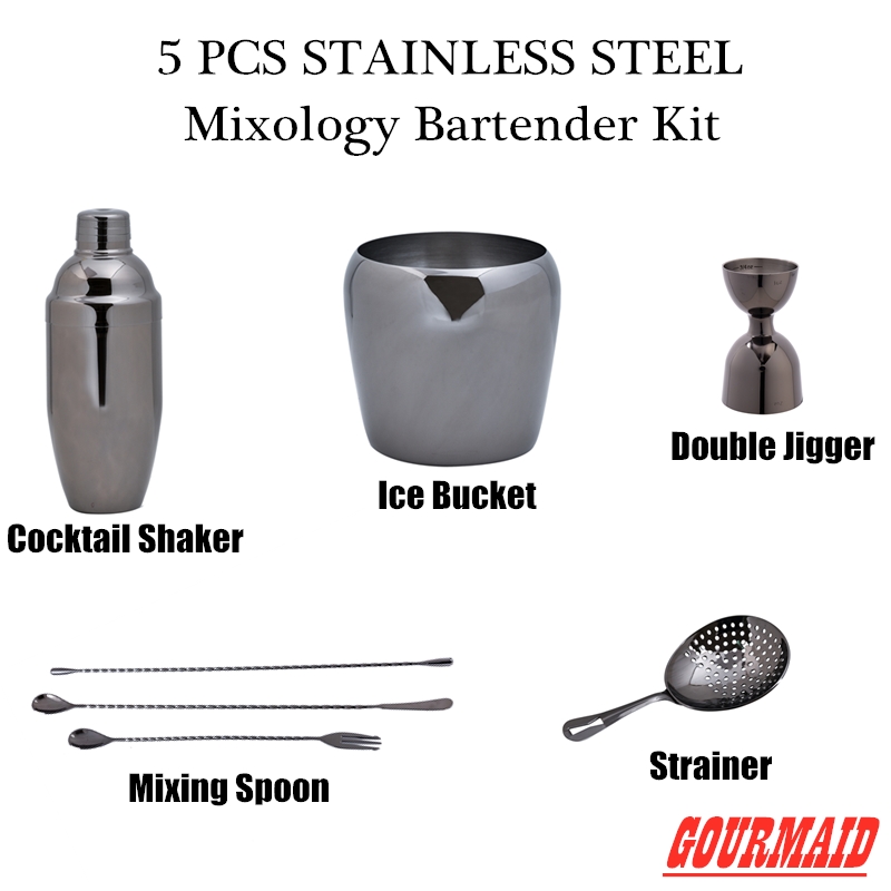 •The cocktail shaker bar set includes all the bartender accessories: 700ml shakers, strainer,30/60ml double jigger, 32cm mixing spoon, 1L ice bucket.