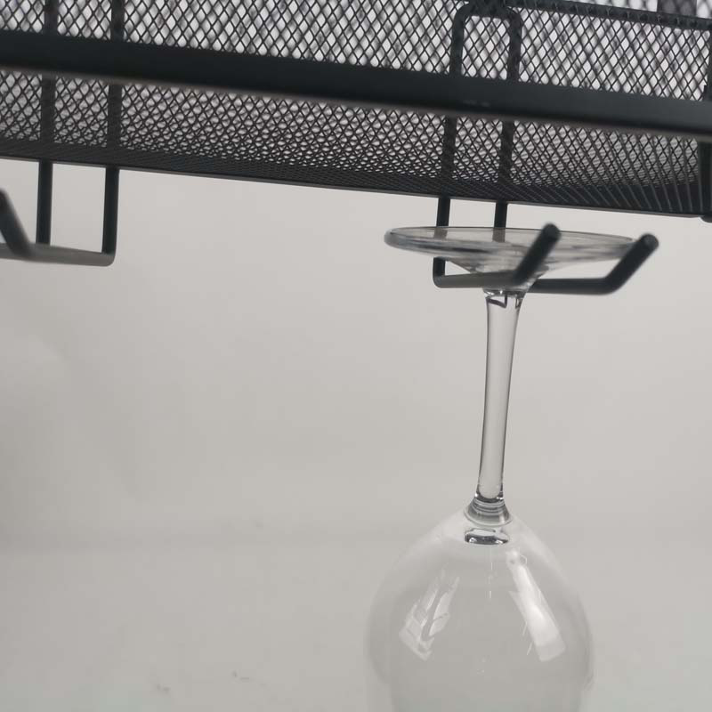 5.ELEGANT DESIGN — Decorative floating design — Fits wide variety of home décor — Durable metal wine rack with rich black finish — Shelf holds up to 5 bottles — Stemware glass holder rack holds up to 4 glasses — Lightweight and sturdy — Wipes clean with cloth for lasting quality and years of use — Wine bottles, glasses, grapes, and corks NOT INCLUDED