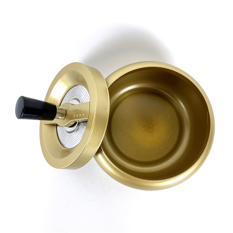 In general, ash dispensers may tend to look unkempt and make your place appear cluttered because most ashtrays do not come with lids. They also don’t help eliminate the smell of cigarettes. This black matte polished modern-looking bowl ashtray has a push down handle that spins to dispense ashes and used cigarettes into a small round receptacle below.