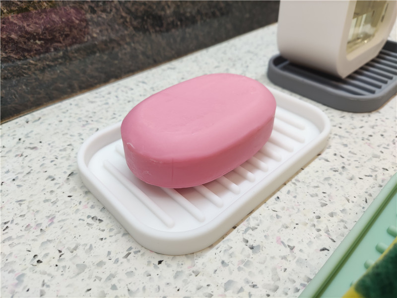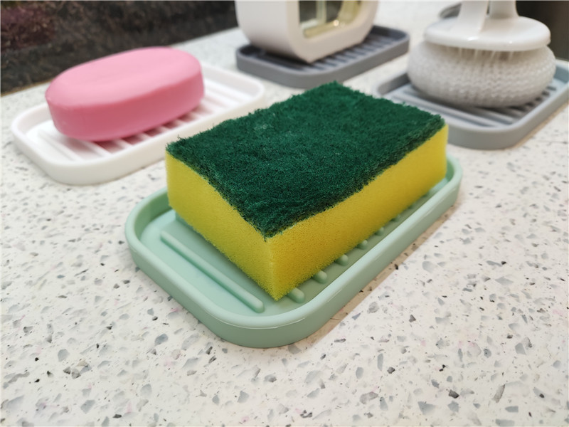 - Thoughtfully designed with raised stable ridges; This design allows air to flow and water to evaporate quickly so your bar soap, scrubbers, steel wool, and sponges dry quickly and completely in between each use; Air circulates to prevent build up on sponges and scrubbers for a healthier, more sanitary kitchen; A raised outer edge keeps water contained and off of kitchen counters and sinks