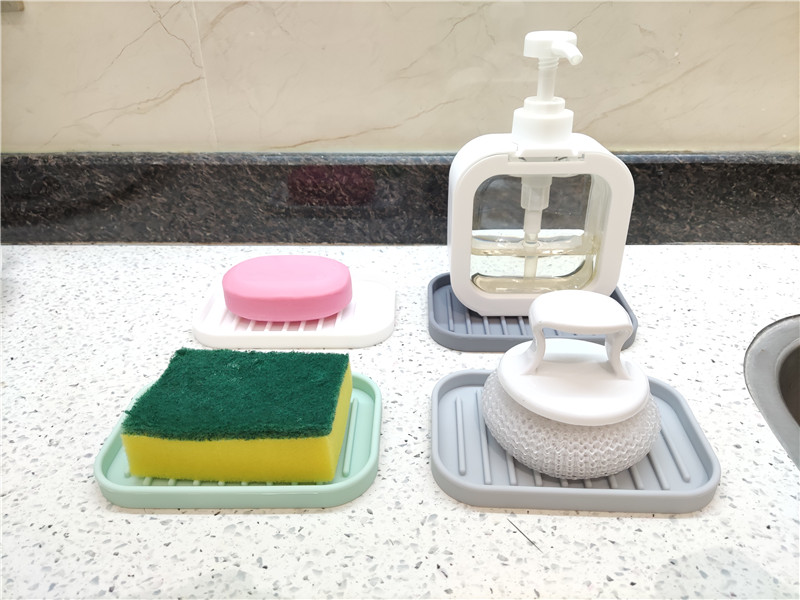 - Keep sponges, scrubbers, vegetable brushes, dish scrapers, brushes, washcloths, hand soaps and scrub pads organized and in one convenient place; Quality, non-slip silicone provides a durable surface while protecting countertops, tabletops and sinks from water run-off, soap scum and spotting; Use in kitchen, bathroom, or laundry and utility rooms; Set of 2