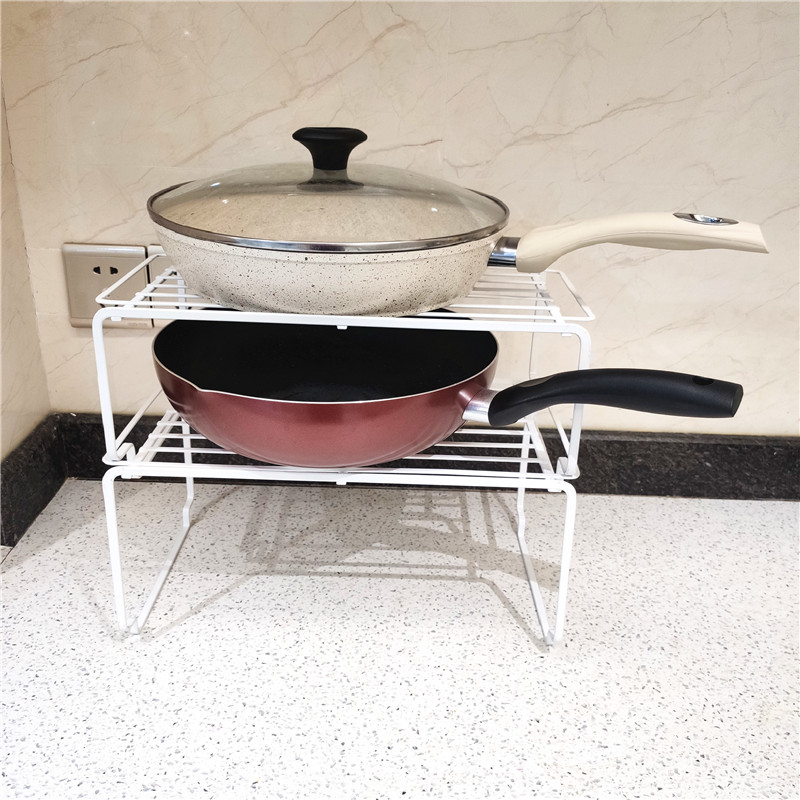 This stackable shelf organizer is made from a strong steel with a powder coated white finish.It gives you an extra layer of vertical space to store more kitchen accessories.It is easy for you to access when you need it.You can purchase one or two or more to stack on top of each other.